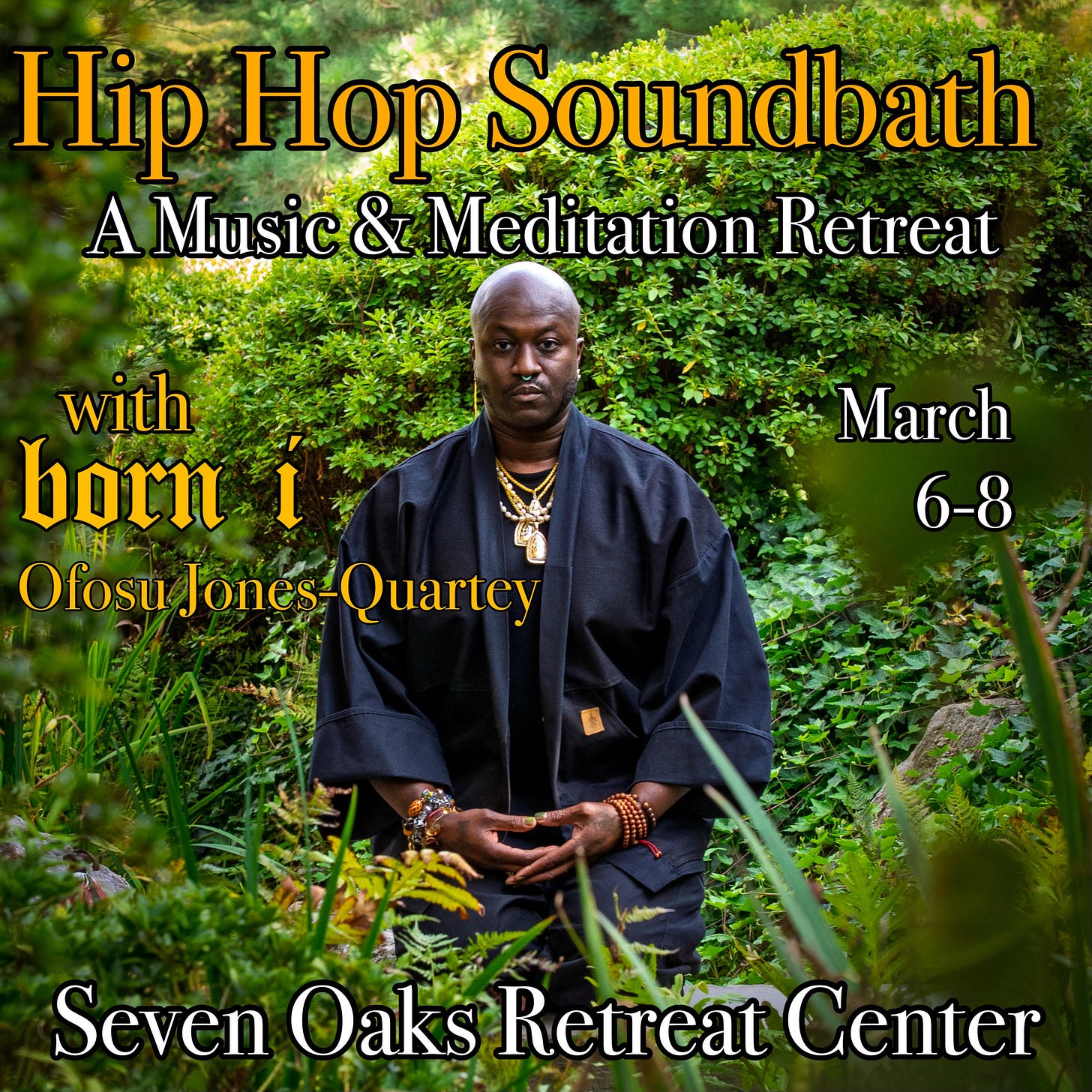 Sponsored by the Insight Meditation Community of Washington (DC) at Seven Oaks Retreat Center March 6-8. Join meditation teacher, author, and hip-hop artist Ofosu Jones-Quartey (Born I) for Hip-Hop Soundbath: Mindfulness, Music, Connection — a one-of-a-kind retreat weaving together guided meditation, contemplative sound, and live lo-fi hip-hop performance.