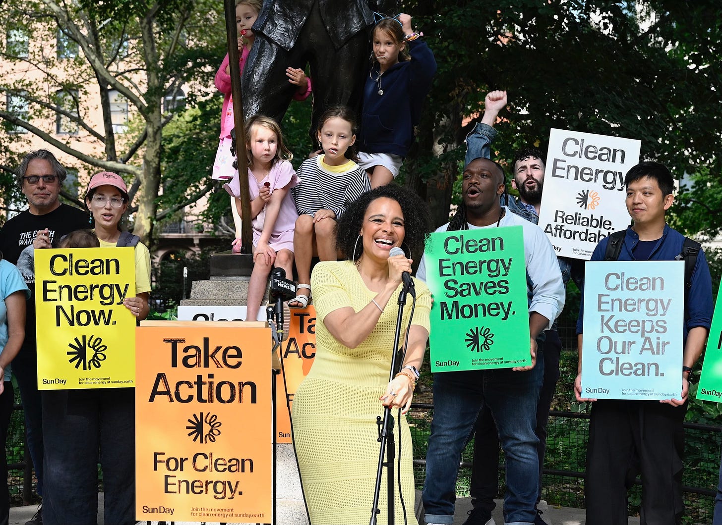 Antonique Smith sings “Here Comes the Sun” at Sun Day in NYC. photo by David Fenton